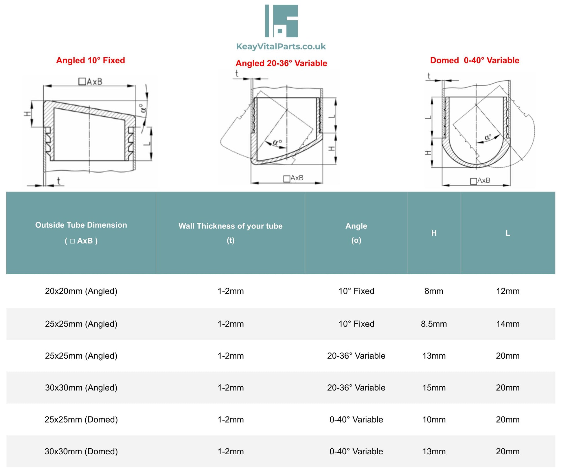 - Example: If the outer dimensions of your tube are 30mm x 30mm and the tube has a wall thickness between 1mm - 2mm, then a 30x30mm insert will fit.